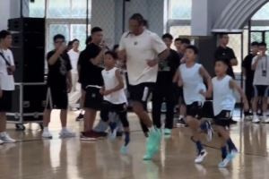 乐在其中!戈登化身训练营教练耐心指导小球员 送大帽&一起做游戏